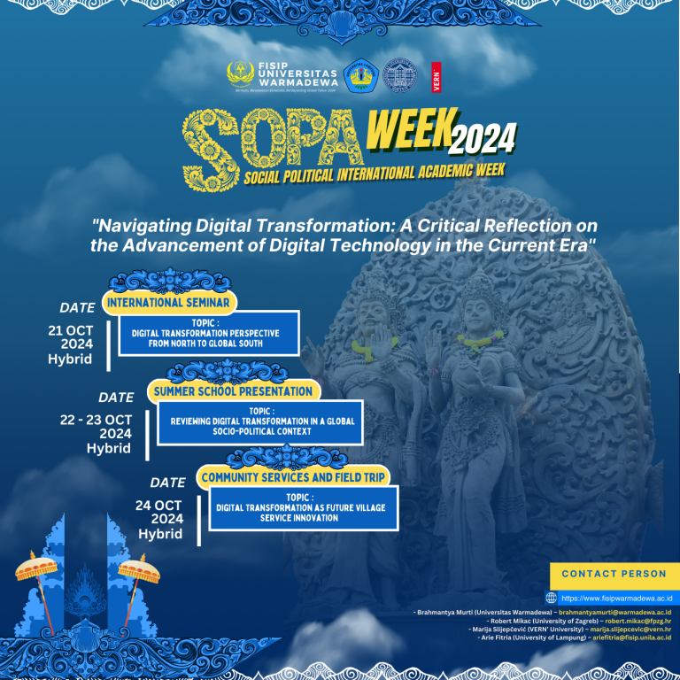 SOCIAL POLITICAL INTERNATIONAL ACADEMIC WEEK 2024 FACULTY OF SOCIAL AND POLITICAL SCIENCES UNIVERSITAS WARMADEWA