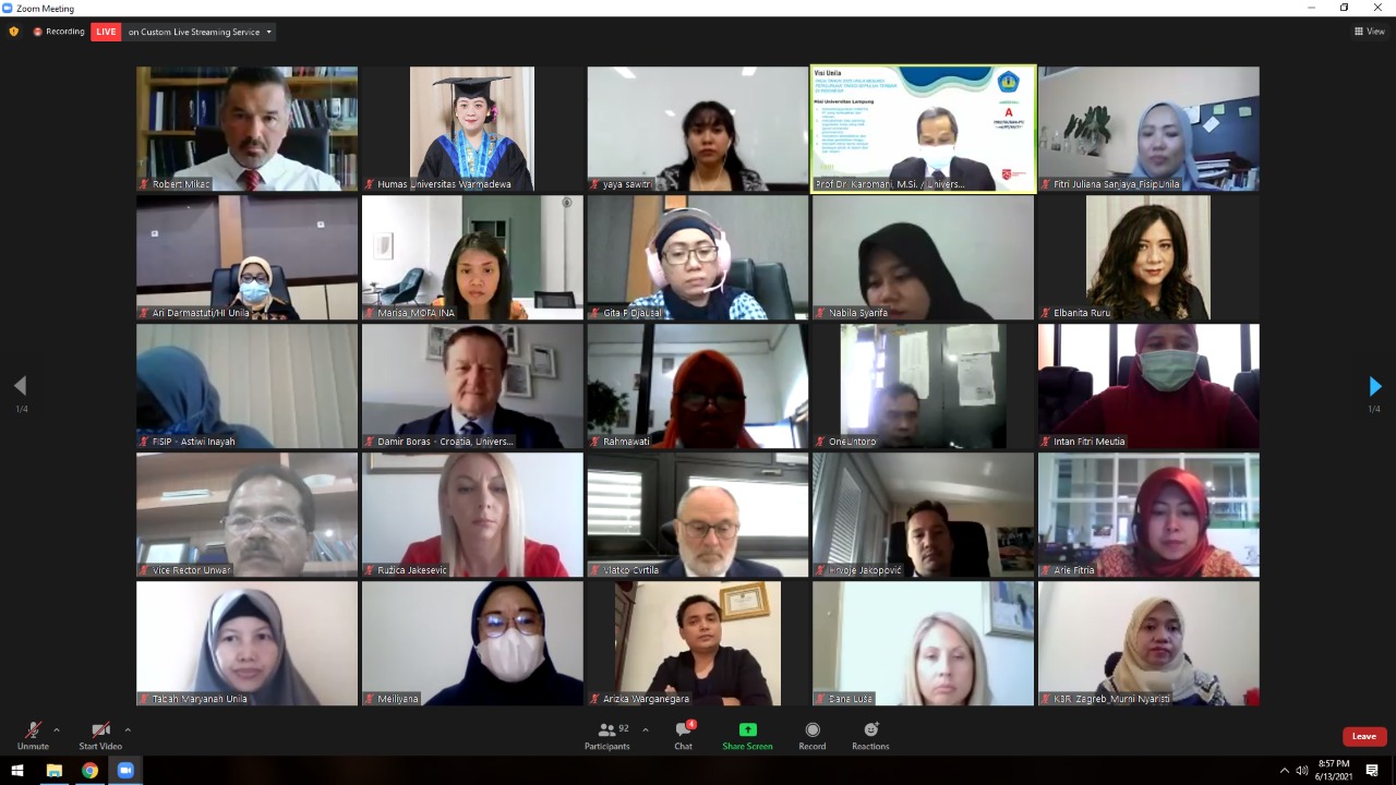 FISIP Unwar Gelar Join Online Summer School 2021. Melalui Kolaborasi dan Kerjasama Fakultas Ilmu Sosial dan Ilmu Politik Universitas Warmadewa, Zagreb University, Vern University, Lampu University kembali menggelar Join Online Summer School Indonesia – Croatia yang diselenggarakan secara daring melalui aplikasi Zoom pada Selasa, 15 Juni 2021.
