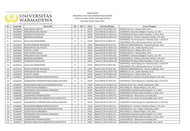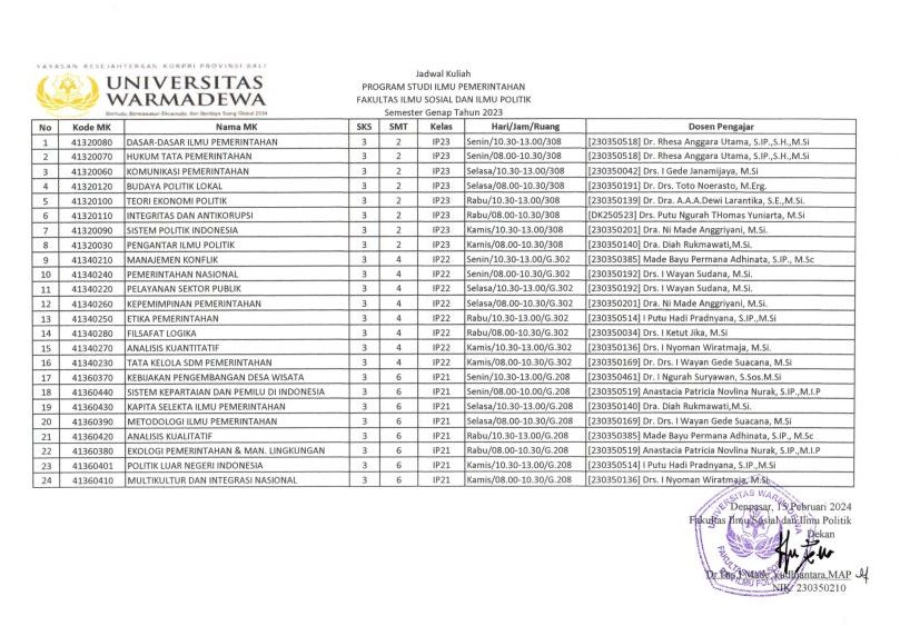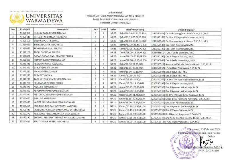 JADWAL PERKULIAHAN GENAP 2023/2024