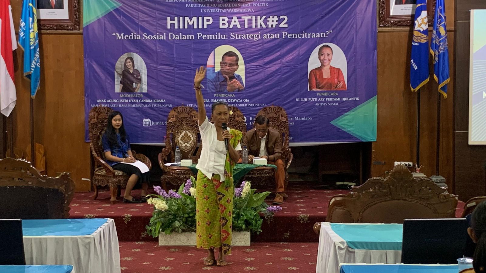 Talk Show HIMIP BATIK #2 (Himpunan Mahasiswa Program Studi Ilmu Pemerintahan Bahas Politik) ini memgundang anak-anak SMA/K dari Denpasar dan Kuta sebagai peserta dan menghadirkan narasumber: